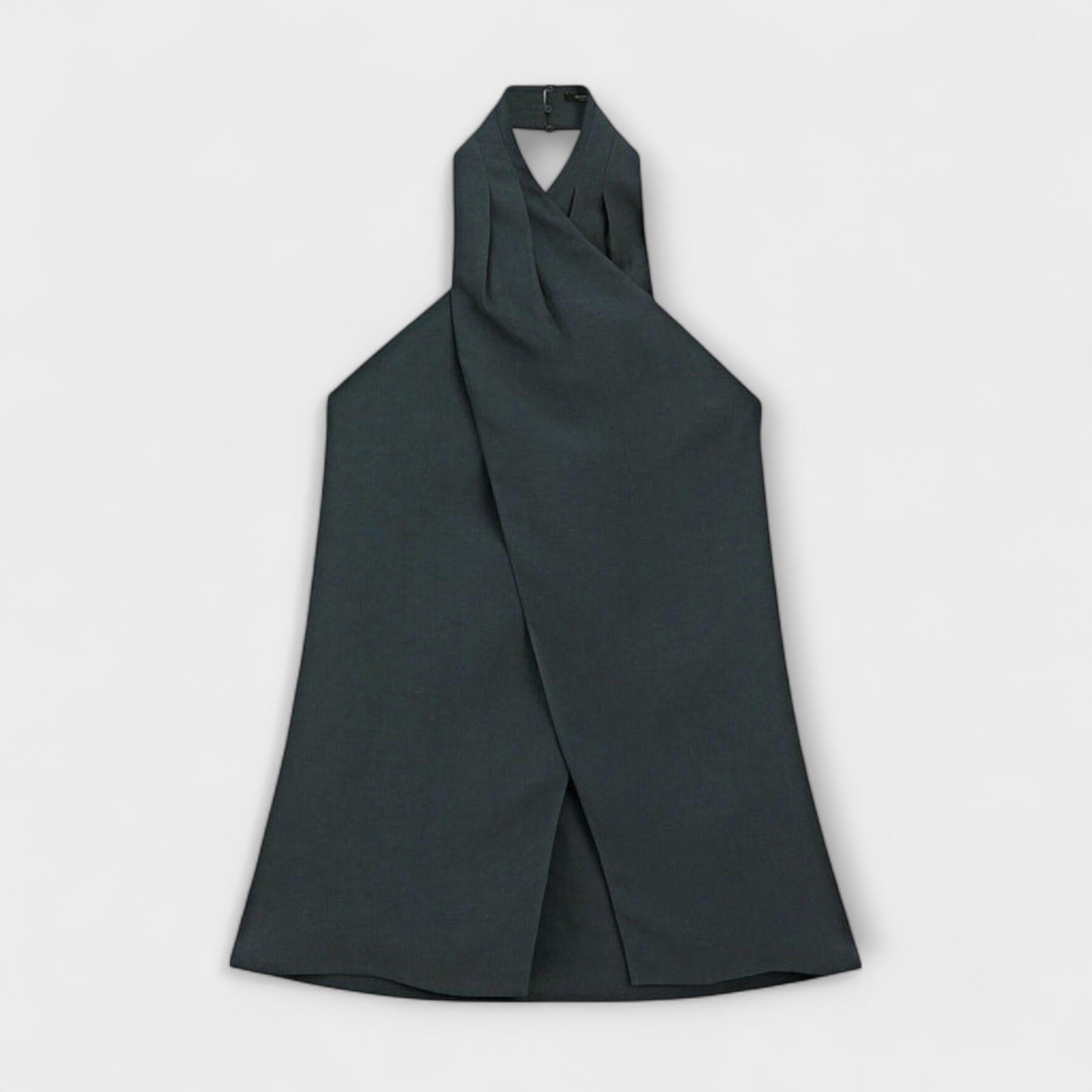 Hannah - Blauer Halter Neck Top mit Rückenausschnitt
