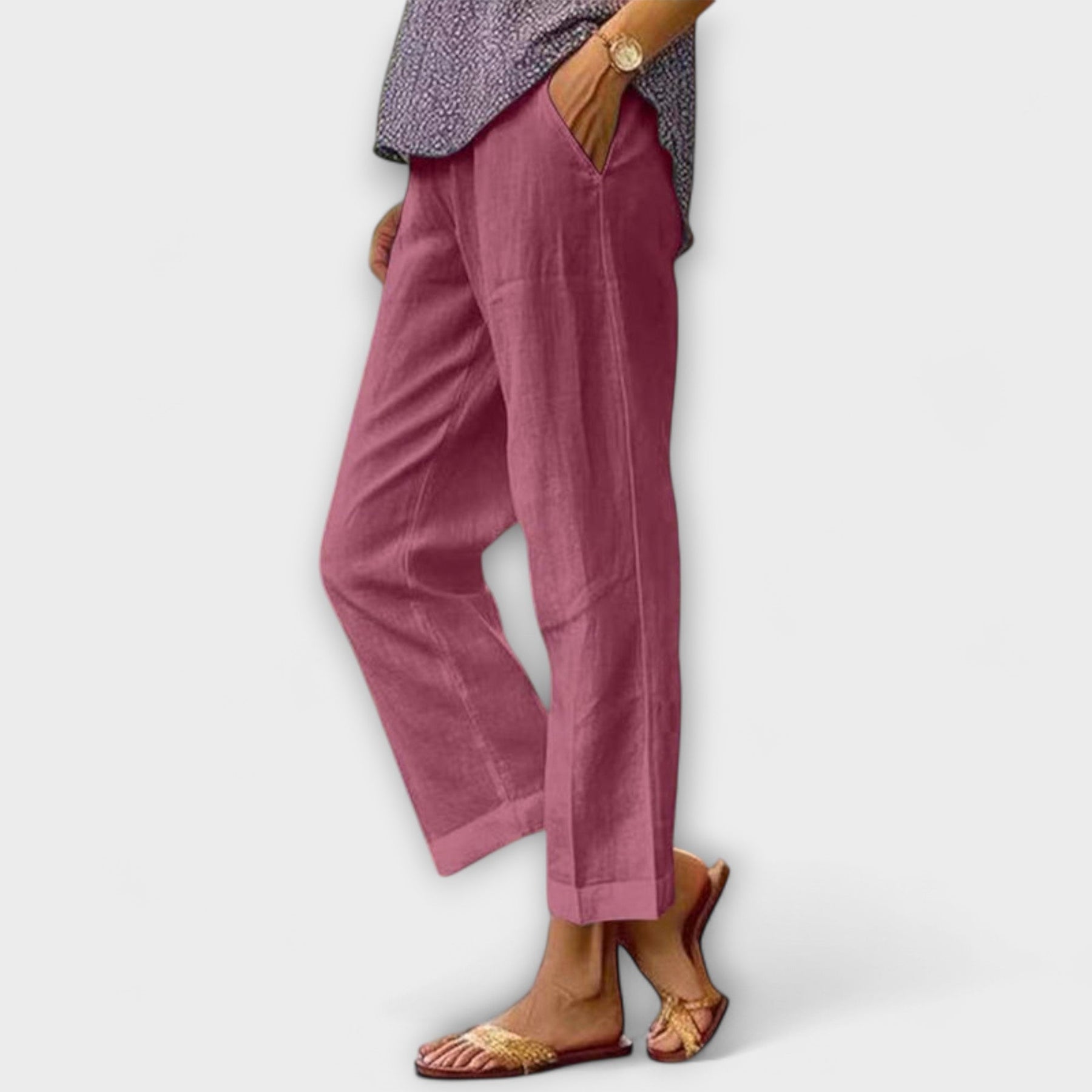 Schreiten Sie mit den Julienne-Hosen in müheloser Eleganz—Ihr unverzichtbares Kleidungsstück für warme Tage, das raffinierten Komfort bietet. Hergestellt aus einem atmungsaktiven Mischgewebe, bieten diese Hosen das perfekte Gleichgewicht zwischen luftiger Leichtigkeit und anspruchsvollem Stil.